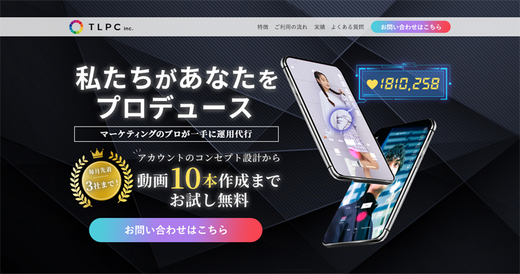 マーケティング戦略の設計からLP制作、公開後のLPO(ランディングページ最適化)やABテスト、広告運用との連携まで含むフルサポート型です。