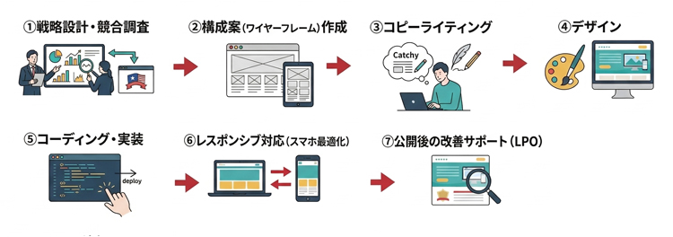 当社が500本以上のLP制作で使用している工程分類に沿って、7つの主要項目を解説します。