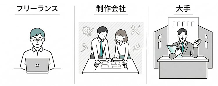 - 【依頼先別】フリーランス・制作会社・大手の費用と特徴を比較