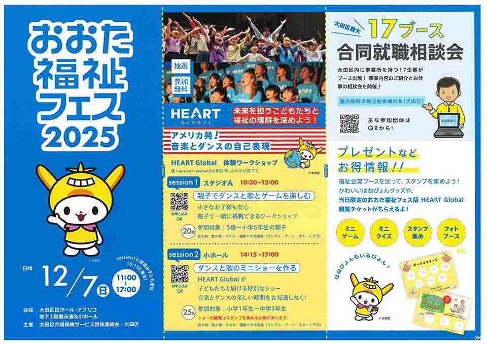 2025.12.11 おおた福祉フェスにて動画撮影を担当しました 2025年度の「おおた福祉フェス」に、 地域福祉の取り組みを紹介する動画制作チームとして参加いたしました。 本フェスは、大田区で活動する多くの福祉事業者が集まり、 それぞれの取り組みや魅力を地域に向けて発信するイベントです。 当日は 大田区長のご参加 もあり、来場者も多く活気あふれる一日となりました。 同じ大田区に拠点を置く企業として、 地域の福祉の強さや魅力を、動画を通じてより多くの方へ届けられればと考えております。 今後も大田区の地域活動に貢献できるよう努めてまいります。